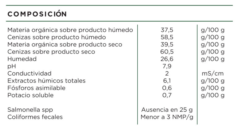 Es un fertilizante orgánico resultado de la mineralización y humificación de materia orgánica. Presentado como pellet, contiene compuestos húmicos, macro y micronutrientes en forma disponible para la absorción de la planta. También, microorganismos que actúan en el ciclo de los nutrientes.